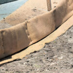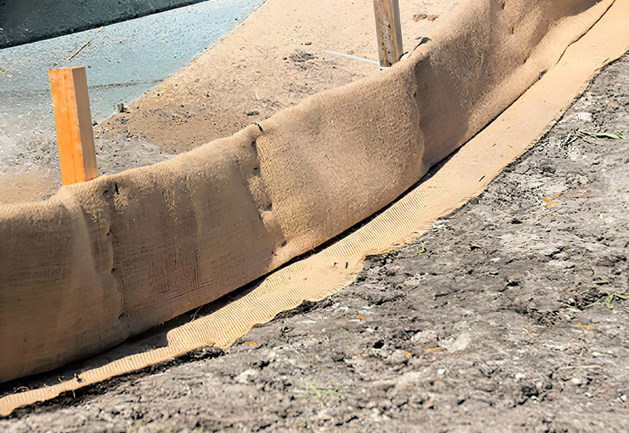 WattleFence Bio Degradable Silt Fence from NESW is a patented sediment retention device constructed using a fleece of coconut fiber wrapped in biodegradable jute woven fabric. The WattleFence uses wood slats and staking to create a 9″ high fence unit. The WattleFence combines the features of wattles and silt fence to reduce sediment and turbidity, while using 99.99% Biodegradable components.