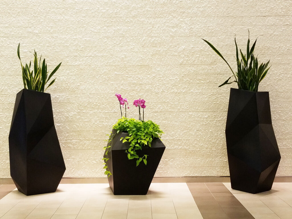 We will work with you to design the plantscape you envision. Our plant care designer will help you pick the plants that will work with the space and lighting you have to work with. They will also work with you to pick out the style of container and dressing you like.