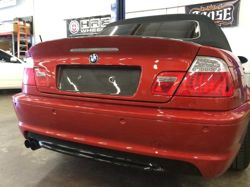 SGT-CSL BMW E46 Carbon Fiber Convertible CSL Style Trunk lid. This version of our trunk lid is available in FRP, Single sided carbon in both 2×2 and 1×1 weave with (honey comb fiberglass inner portion). Our answer to a CSL Style trunk lid for your E46 Convertible is the only “Handle-less” CSL Vert Trunk in the world! Every other CSL Trunk for convertibles currently available re-use the factory trunk handle. With our trunk we wanted the real CSL look while still fitting the look of the convertible. The License Plate light holes in our trunk will not work with OEM lights as they are mounted in the factory stock trunk handle. We recommend the factory E9X LED lights which is an option when ordering (pre-wired kit) or Email us for a parts list. The rear emblem spot on the trunk is the same size as your factory convertible emblem. * Made in USA