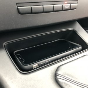 2. Wireless Device Charging Unit preinstalled into OEM front center console storage (oddments tray) (replaces existing lid with ashtray and Sunglass holder as pictured)