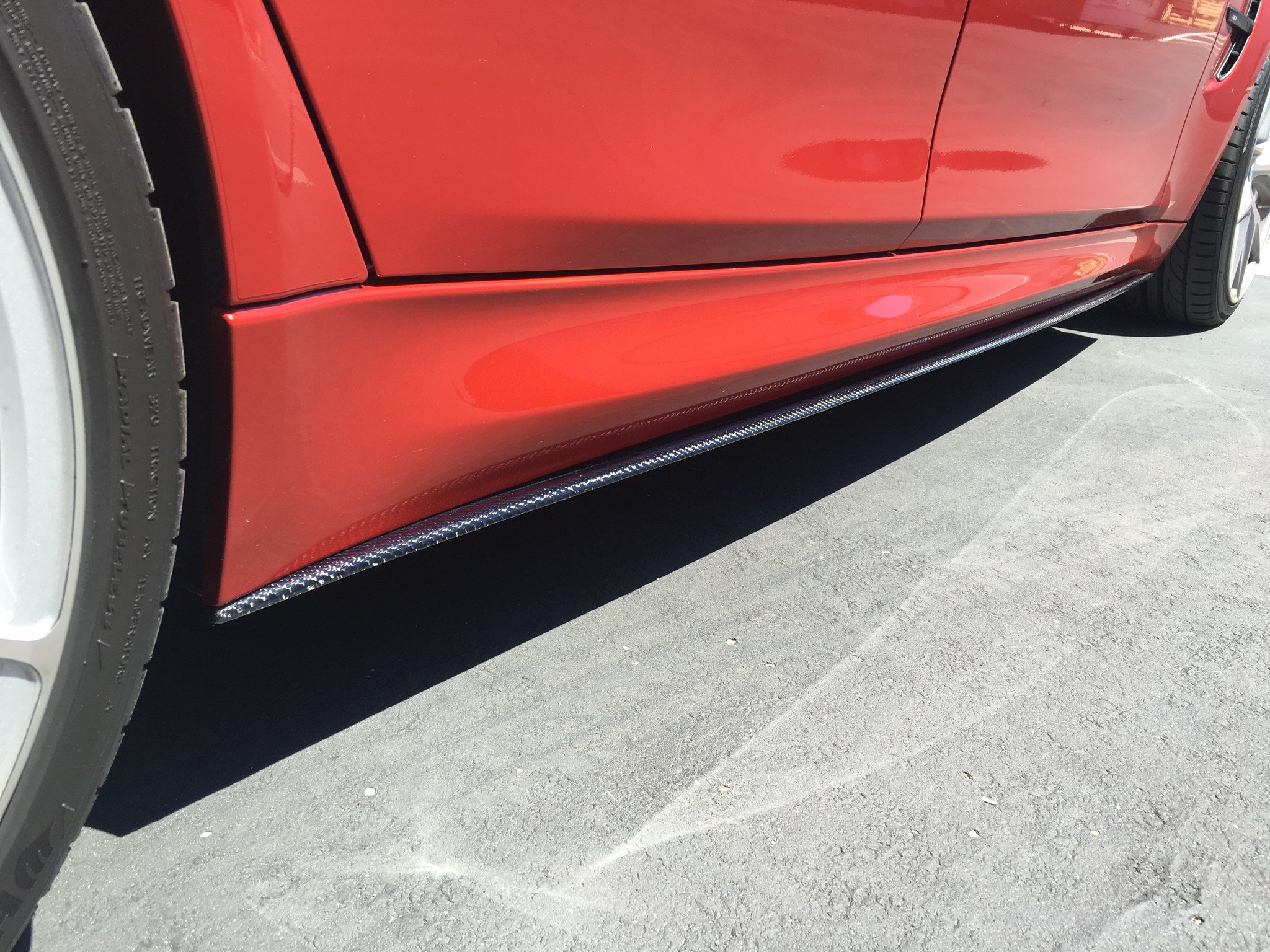 Our BMW F80 M3 Side Skirt Extensions are the perfect blend of OEM and aftermarket styling. It follows the factory styling lines of the M3 without looking out of place. We have a full Aero Package available soon for the BMW F8X Chassis and these Skirts are just another part. Made using Vacuum infusing technology and sprayed with Automotive UV Clear coat for a lasting appearance. The Skirt extensions come with all hardware, 3M tape pre-installed, and ready for install. Available in FRP (Gloss or Matte Black), 1×1 and 2×2 CF weave. Made in the USA.