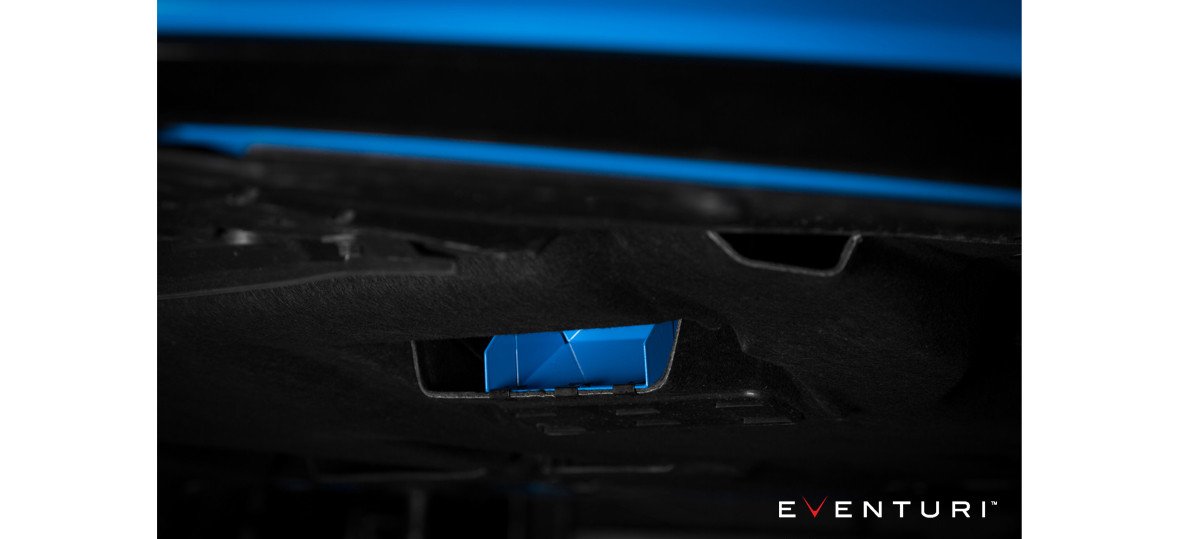 Our intake system utilises a unique cold air feed from the undertray allowing the filter to be saturated with ambient air during motion regardless of how hot the engine bay becomes. This coupled with our unique Venturi housing for smooth flow results in a mid-range gain of 15hp and peak RPM gain of 10hp. The dyno graph below shows the comparison between the stock airbox and the Eventuri intake system on a standard car with standard map and exhaust.