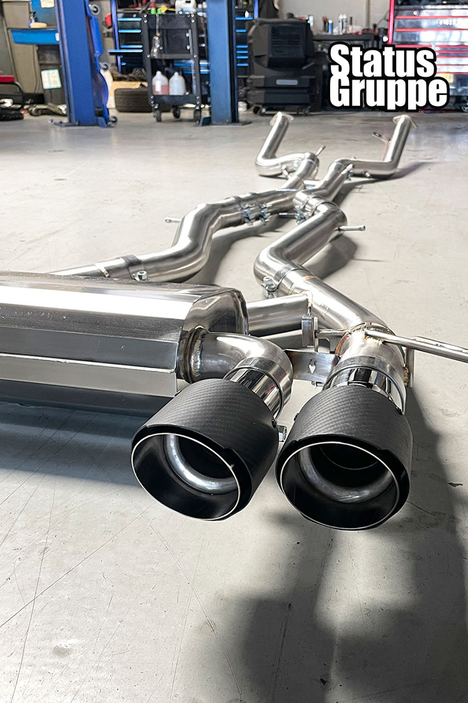 G8X Dry Black Carbon Exhaust Tips for the Status Gruppe G8X Stainless Race Sport Exhaust System