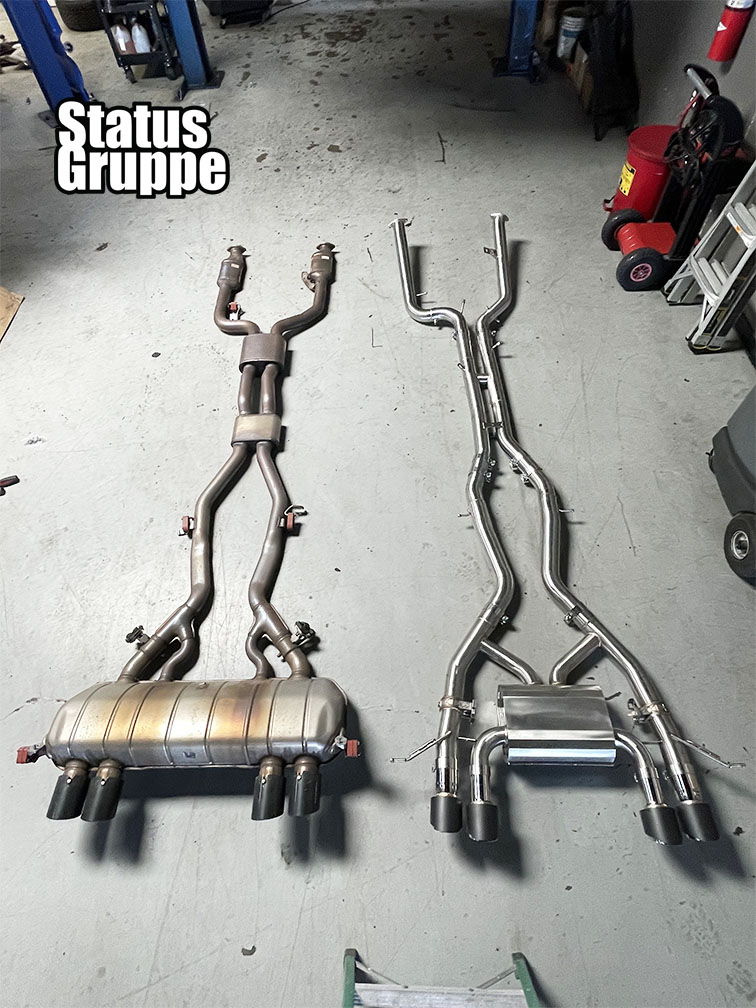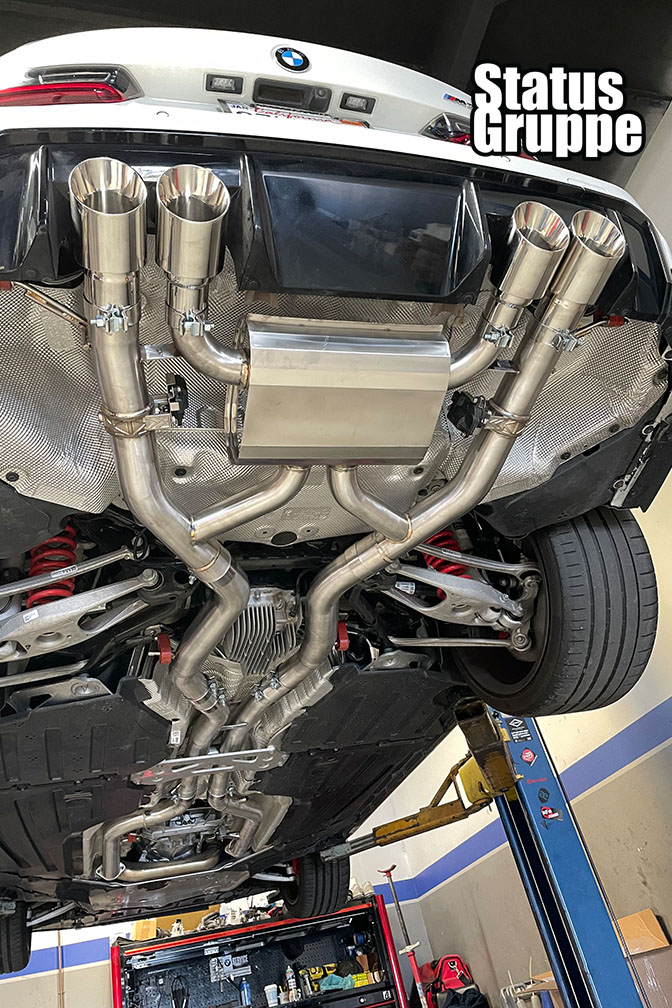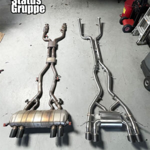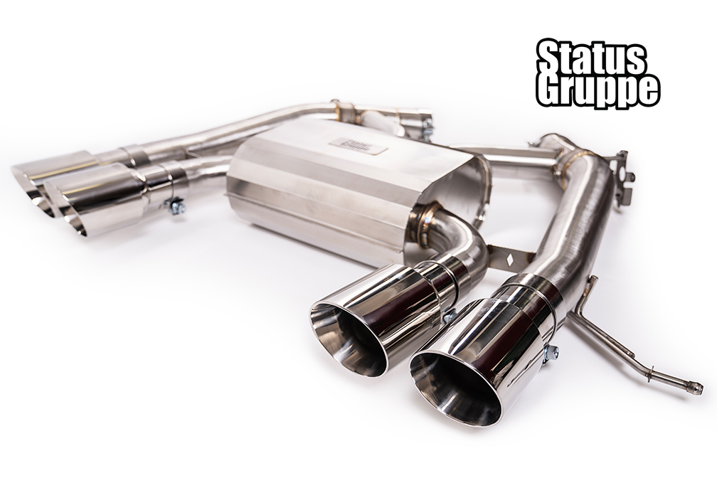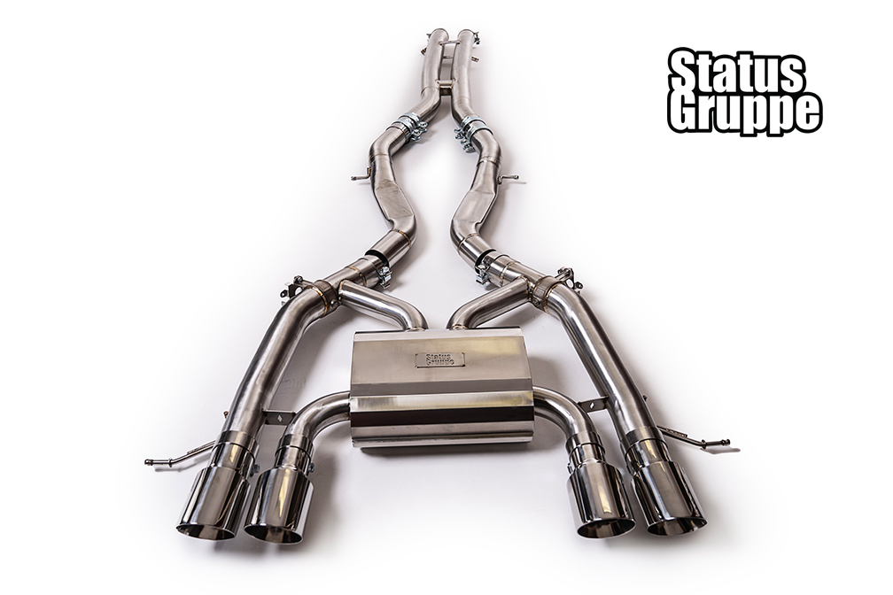 G8X Stainless Race Sport Exhaust System M3/M4. For the 2021 to 2023 BMW G80 M3, G82 M4, G83 M4 Convertible, and the G81 Wagon. Get the Status Gruppe G8X exhaust, Reduce the weight of your factory exhaust system, add performance to an already amazing power plant, get that amazing sound that Status Gruppe has brought to previous generations, all in an attractive tig welded & polished stainless steel package, with great fitment. Check out our other optional exhaust tips as well as carbon fiber products for your G8X. Currently in Production
